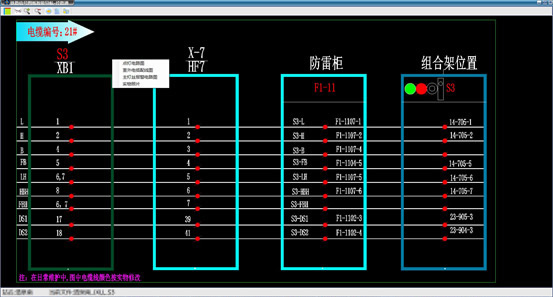 該系統可設計、繪制出規范的電纜徑路圖,并對完成的電纜徑路圖進行自動識別,如各條主電纜的徑路結構、箱盒類型、連接設備的